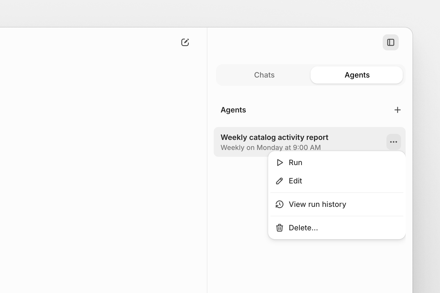 Each agent run creates a new conversation with the results. Access completed runs through the agent's run history or your AI chat history.